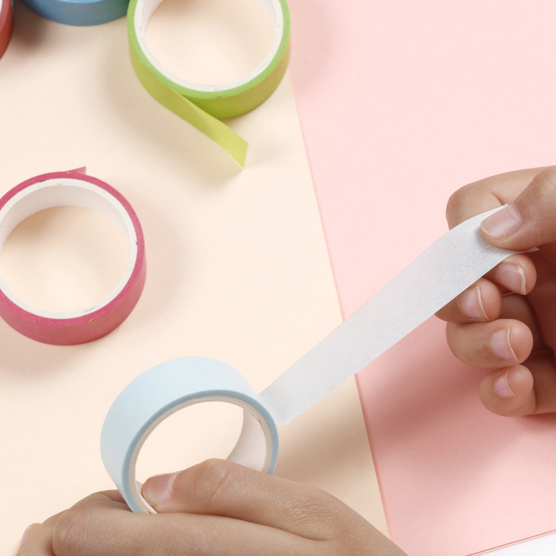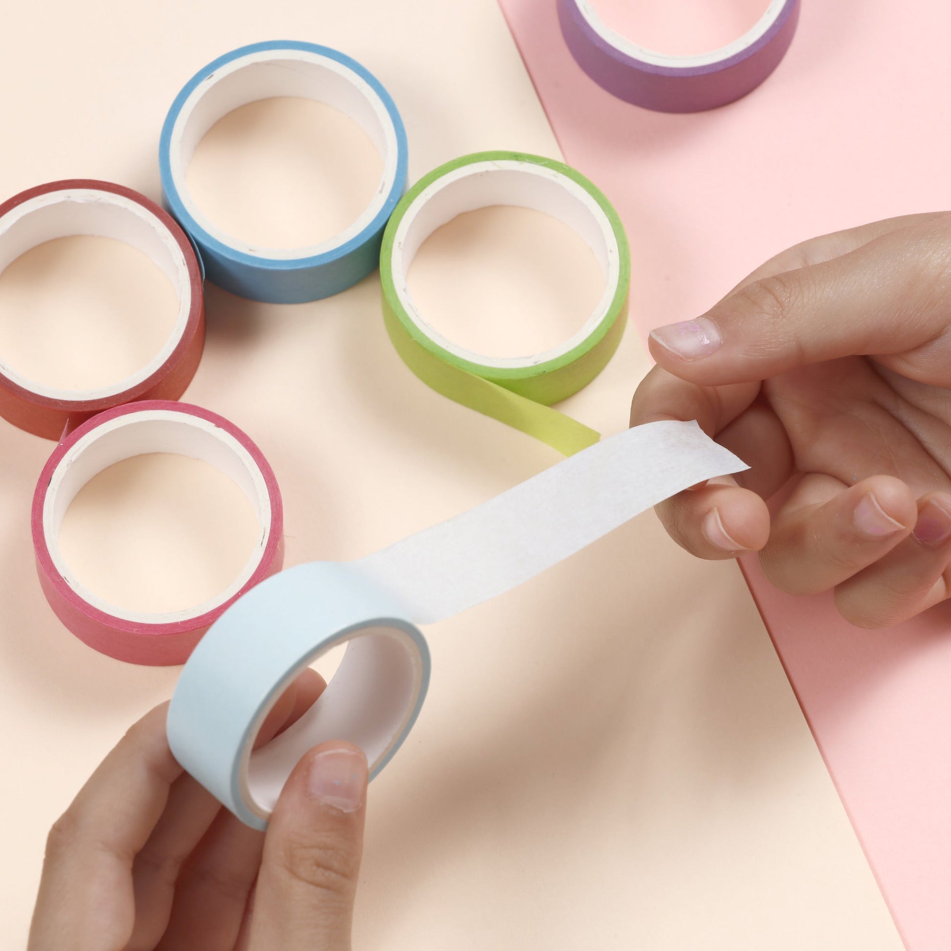- Our colorful masking tapes are crafted with top-quality, non-toxic adhesive, making them safe for creative activities with children. The repositionable painter's tape allows easy, residue-free adjustments, ideal for use on clear and smooth surfaces like paper, objects, and walls.
